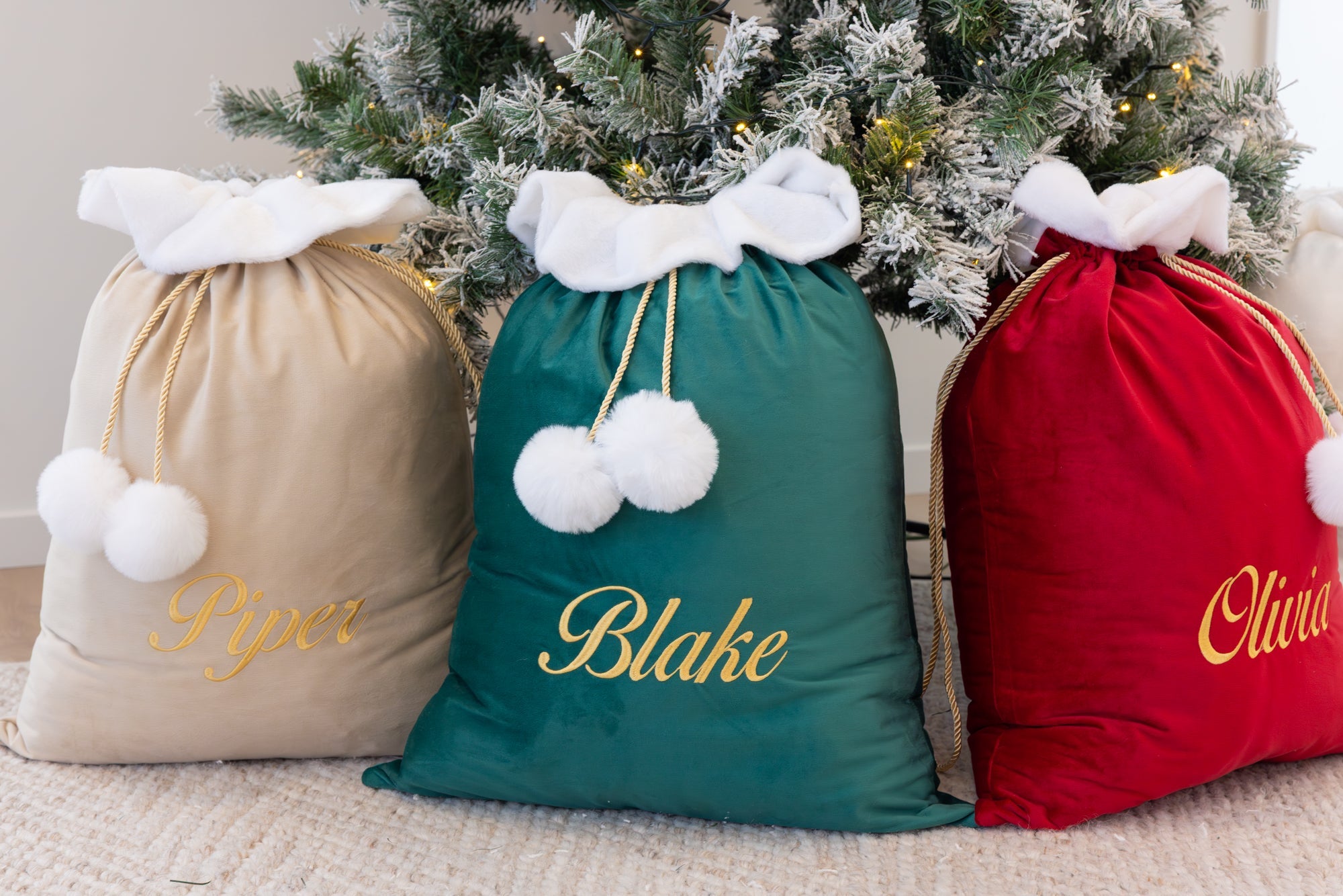 Our beautiful Luxe Velvet Personalised Santa Sacks are an absolute must have under any Christmas Tree this festive season.
